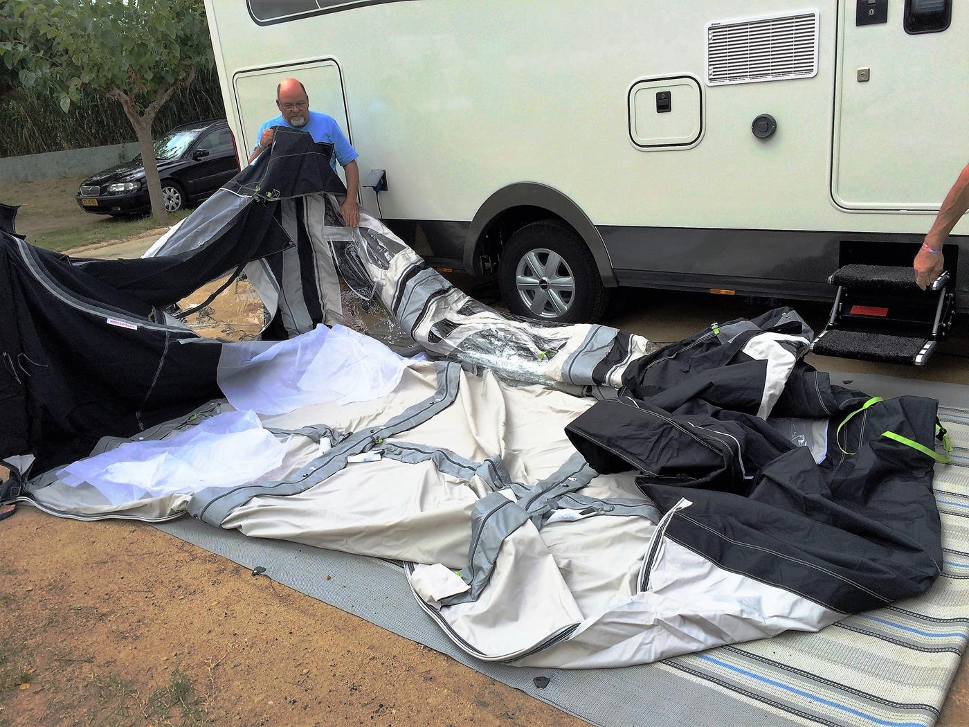 Wir holen unser Luftzelt «the monster» bei Alan und Carol ab. Wir sind wirklich dankbar, dass sie das von England bis hierher mitgenommen haben. Später am Nachmittag, sind wir bei Brunhild zu ihrer Geburtstagsfeier eingeladen. Monika testet den Backofen und es klappt, es gibt einen leckeren Apfelkuchen. Später gehen wir am Strand spazieren wo wir einen Regenbogen bewundern können.Donnerstag, 15.09.2016 Salou, Aufbau des Luftzeltes