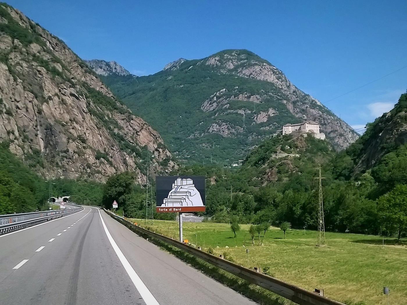Leider führt uns unsere Route heute wieder durch den Tunnel des Grossen Sankt Bernhard. Dieser hat eine Länge von 5798m und wir bezahlen für eine einmalige Durchfahrt € 43.40, bzw. Fr. 45.40. Das ist moderne Wegelagerei! Der Gotthardtunnel ist beinahe dreimal länger, nämlich 16900m und ist gebührenfrei.
