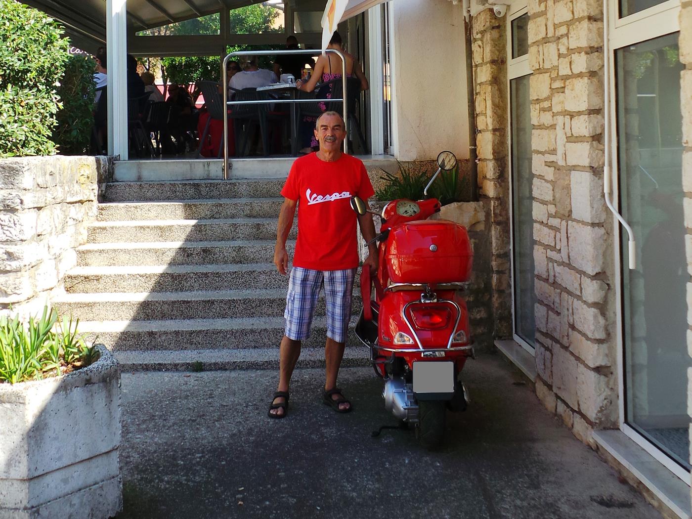 Am Vormittag fahren wir mit der Vespa nach Rovinj wo wir die kleinen und grossen Boote im Hafen bewundern können. Am Nachmittag geniessen wir das Faulenzen am Pool. In der Nacht kommt Sturm mit heftigem Regen auf, der unser Kochzelt arg in Mitleidenschaft zieht.Wir biegen die verbogenen Stangen wieder gerade, bevor Tove und Geir mit ihrem neuen Carthago Highliner ankommen. Diesmal kommt auch ihr Sohn Tommy mit seiner Freundin Anita mit dem Wohnwagen nach Rovinj.Samstag, 19.07.2014 – Mittwoch 23.07.2014 Rovinj