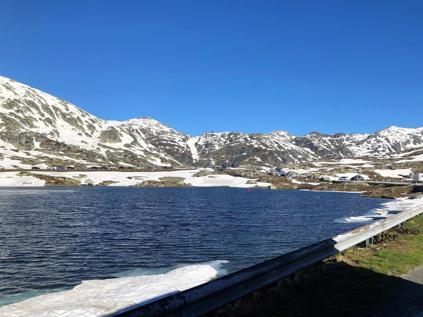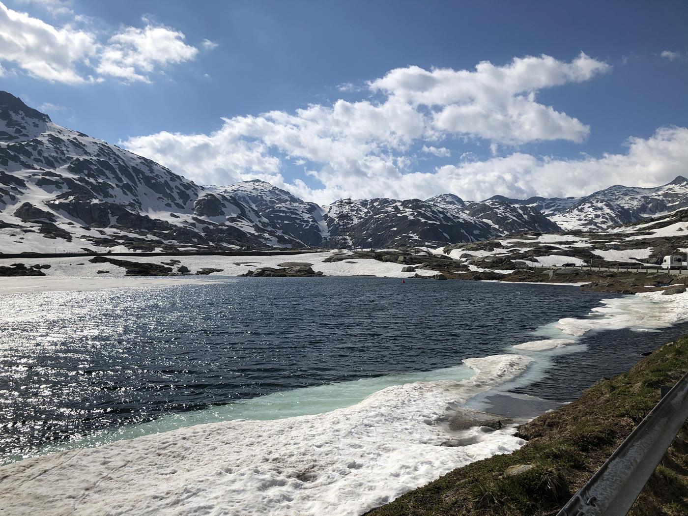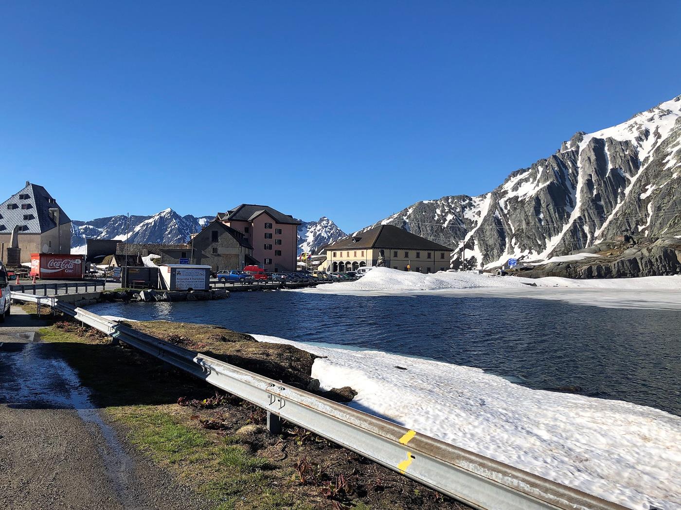 Auch auf der Passhöhe hält sich der Andrang in Grenzen und wir können unser Wohnmobil auf unseren bevorzugten Platz am See stellen. Endlich haben wir es geschafft, am Tag der Eröffnung der Passstrasse auf den Gotthard zu fahren, hätten aber wesentlich höhere Schneewände erwartet.