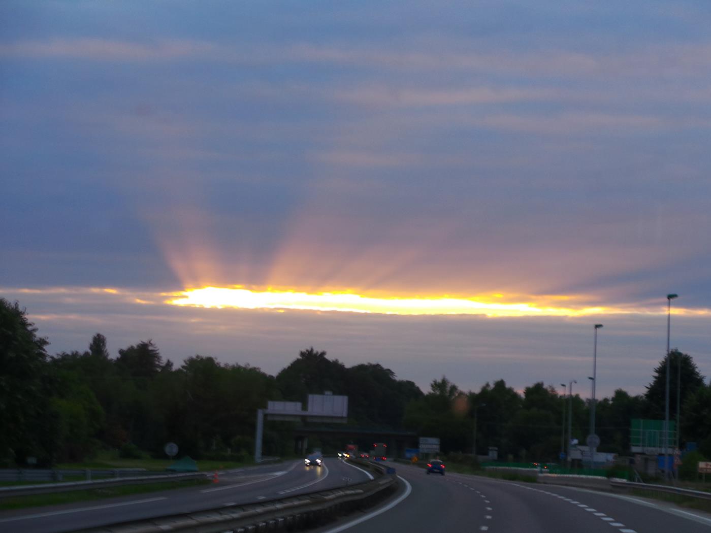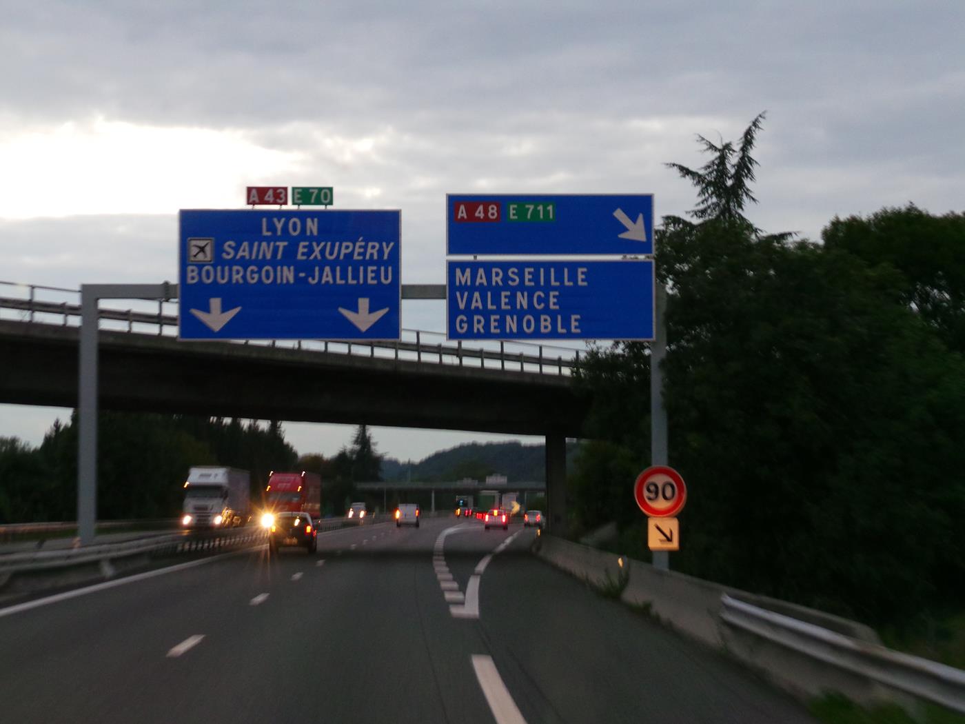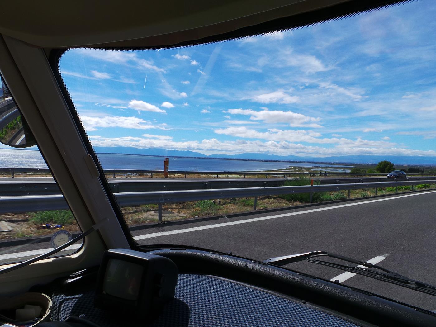 Nach dem Grenzübertritt in Genf fahren wir auf der A41, A49, A7 Richtung Grenoble, Valence, Orange. Um 19:00Uhr machen wir eine Pause und essen von dem feinen Zopf den Waltraud für uns gebacken hat.Auf der Weiterfahrt können wir noch die spezielle Abendstimmung geniessen. Um 20:00Uhr biegen wir auf die A48 Richtung Valence ein und erreichen unseren Übernachtungsplatz in Montfrin um 23:00Uhr.