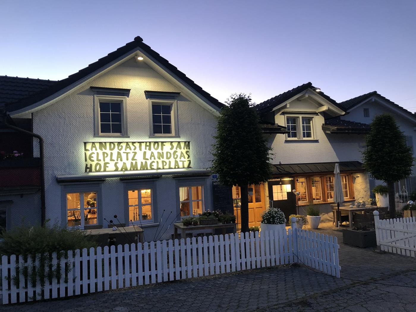 Die abwechslungsreiche Route führt uns durch schöne Landschaften und bald kommen wir in Appenzell an. Hampi hat uns ein Restaurant empfohlen, wo man gut essen kann und so reservieren wir einen Tisch für heute Abend.Es ist unsere erste Reise nach Appenzell und wir sind angetan von den buntbemalten Häuser, welche charakteristisch für den Dorfkern sind. Parkiert haben wir unser Wohnmobil auf dem Zielplatz, wo es 6 Busparkplätze hat, welche auf Grund der Corona Krise leer stehen. Nach unserer Kurzbesichtigung vom Dorf fahren wir zu unserem Übernachtungsplatz beim Restaurant Sammelplatz, wo wir mit Hampi und Heidi abgemacht haben. Das Essen schmeckt uns sehr gut und der Service ist freundlich. Am Ende zeigt uns der Wirt höchstpersönlich noch die über dem Restaurant liegende Wohnung, welche auch gemietet werden kann. Das Restaurant ist sehr geschmackvoll und mit viel Liebe zum Detail dekoriert und die verschiedenen Dekorationsgegenstände können auch gekauft werden.