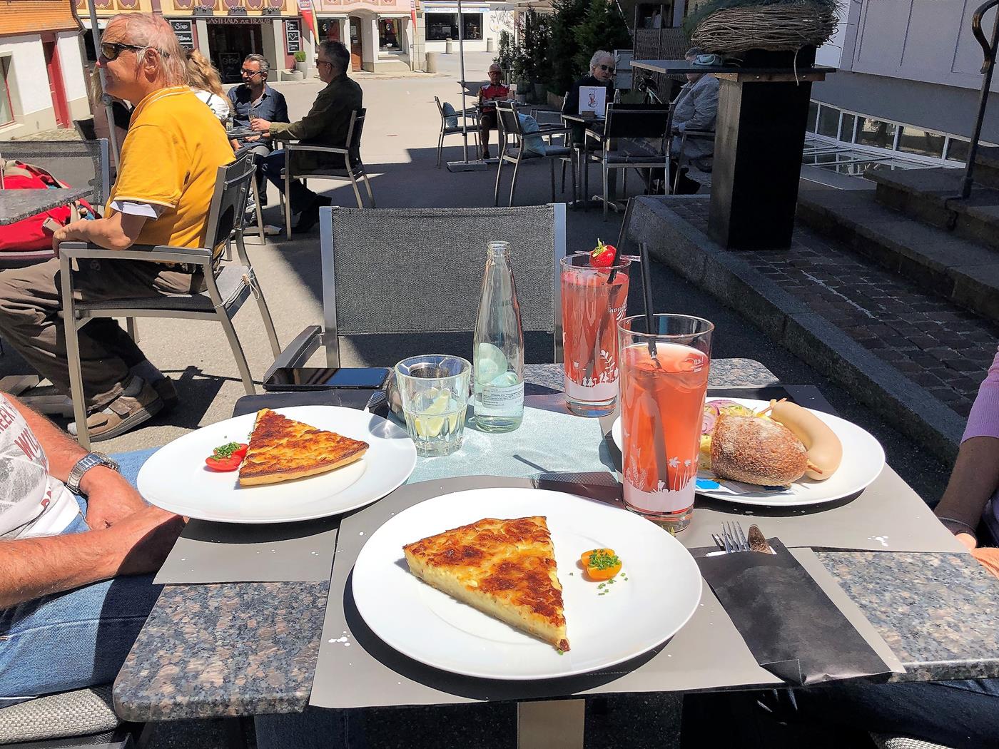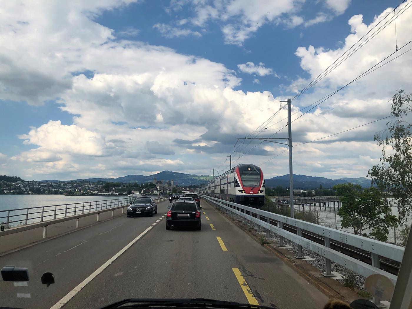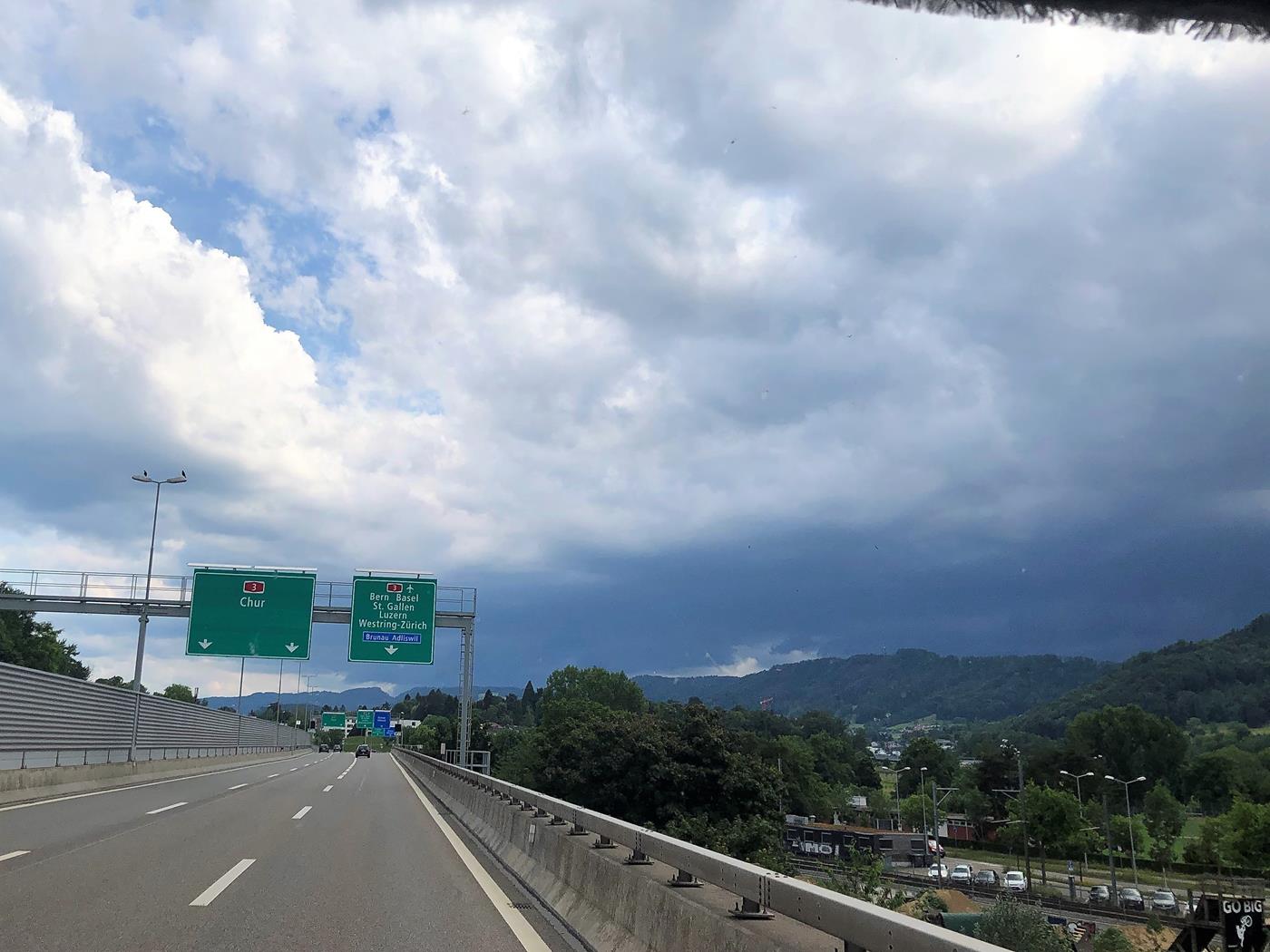 Kurz vor Gams machen wir auf einem Rastplatz unsere Mittagspause, bevor es weiter Richtung Walenstadt geht.Wir fahren über die Seebrücke nach Rapperswil-Jona und dann auf der rechten Zürichseeseite (Goldküste) nach Zürich. Die Wolken sehen immer bedrohlicher aus und wir hoffen ohne Hagel nach Hause fahren zu können.