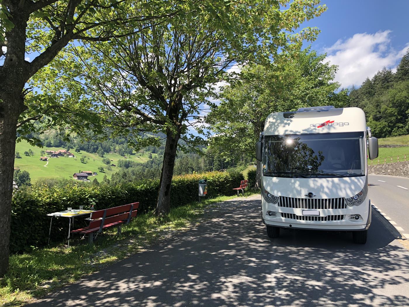 Um 15:50Uhr holen wir den Wagen wieder ab. Unsere Markise ist in Ordnung und es war keine Reparatur notwendig. Dies wurde uns mitgeteilt, als wir eine schriftliche Bestätigung der Instandstellung verlangten.Wir wollen auf der Landstrasse (Grand Tour of Switzerland) nach Appenzell fahren, um dort Hampi und Heidi zu besuchen, welche wir vom Wohnmobilforum-Schweiz kennen. Von Appenzell soll es dann weiter Richtung Buchs ins Glarnerland gehen.