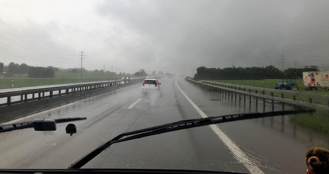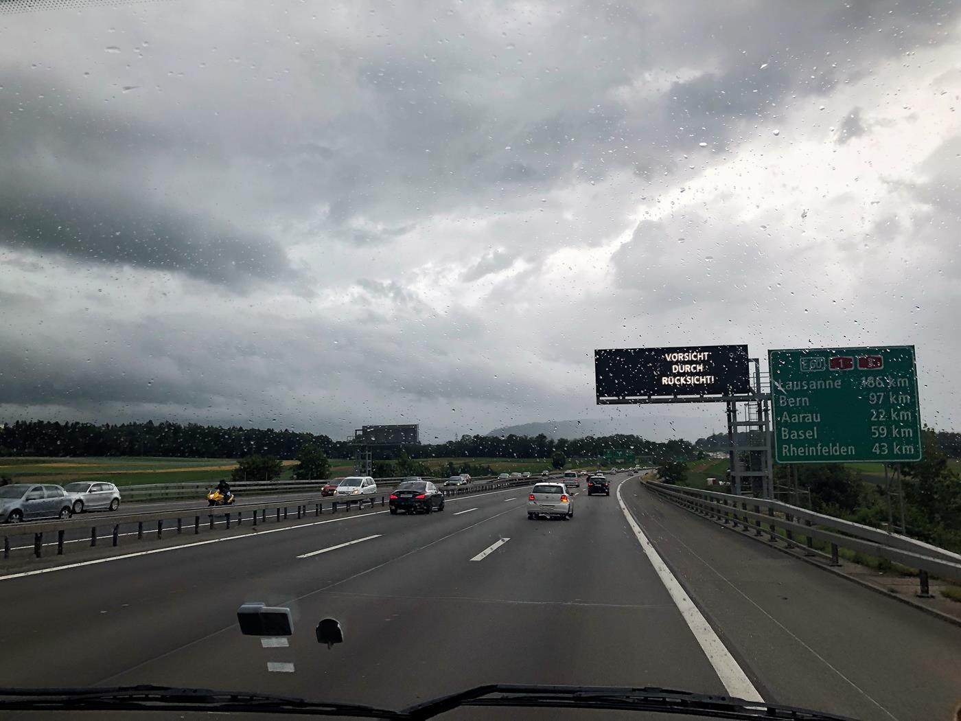 Unterwegs kommen wir in einen heftigen Regenschauer und die Temperatur fällt von 28°C auf kalte 12°C, aber wir schaffen es hagelfrei nach Hause zu kommen.