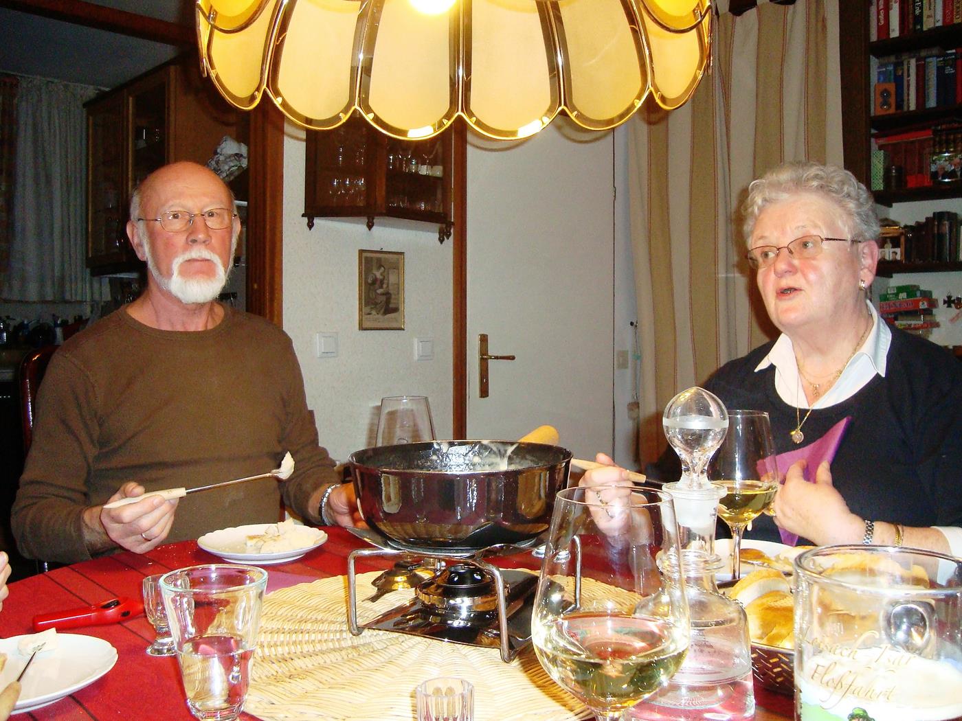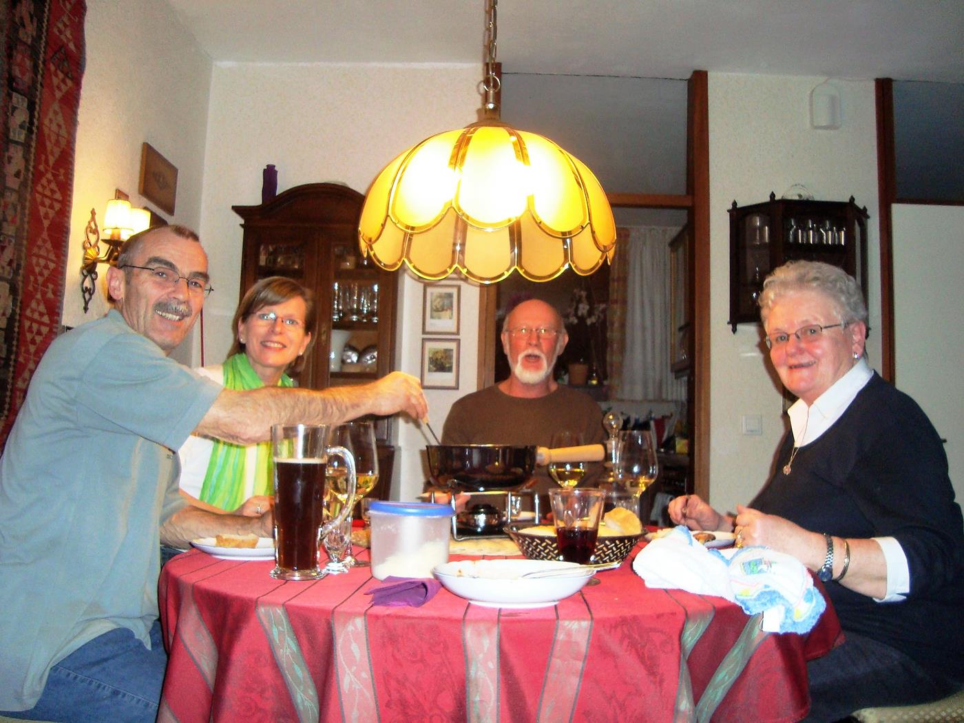 Die Montage des Rollerträgers schaffen wir ohne Probleme und so sind wir rasch wieder unterwegs Richtung Kirchheim, wo wir von Norbert und Karin herzlich empfangen werden.Wir haben abgemacht, dass wir alles mitnehmen was man für ein Fondueessen benötigt und so können wir schon bald einen gemütlichen Abend zusammen verbringen.