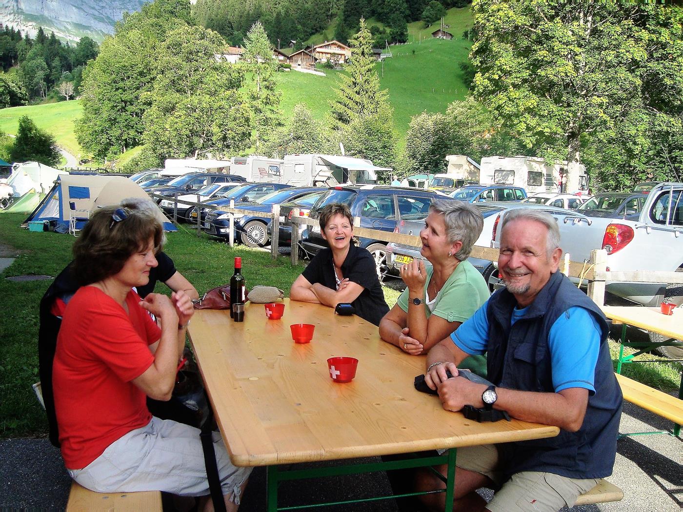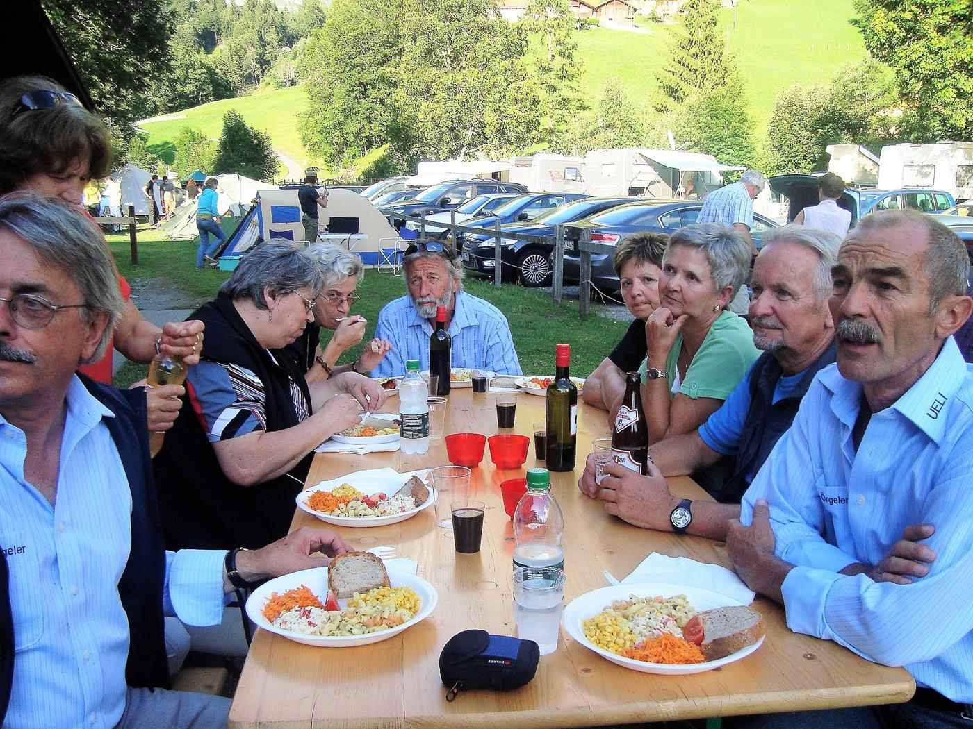 Zurück auf dem Campingplatz verpflegen wir uns, bevor wir unseren Auftritt haben. Es ist ein schöner und warmer Abend und wir freuen uns, dass den Gästen unsere Musik gefällt.