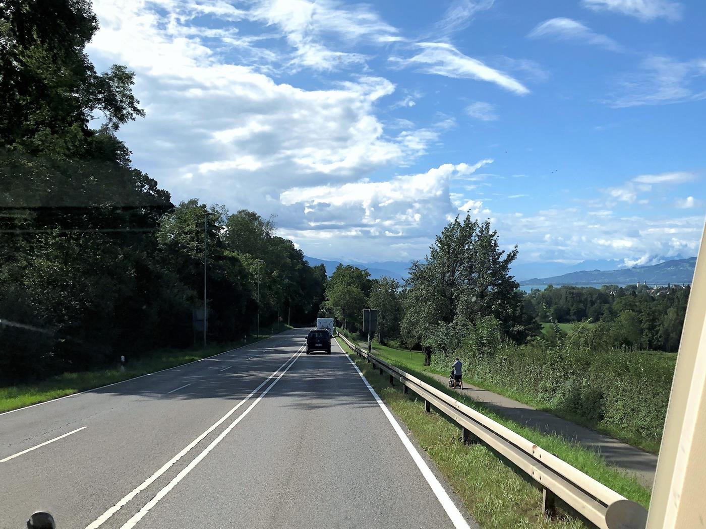 Wir wählen für unsere Rückfahrt die Strecke dem Bodensee entlang aus, was keine gute Idee ist, denn wir müssen uns durch den stockenden Verkehr quälen, der auf dieser Strecke wohl unvermeidlich ist. Da das Wetter unterwegs immer besser wird, können wir die Reise trotzdem geniessen.