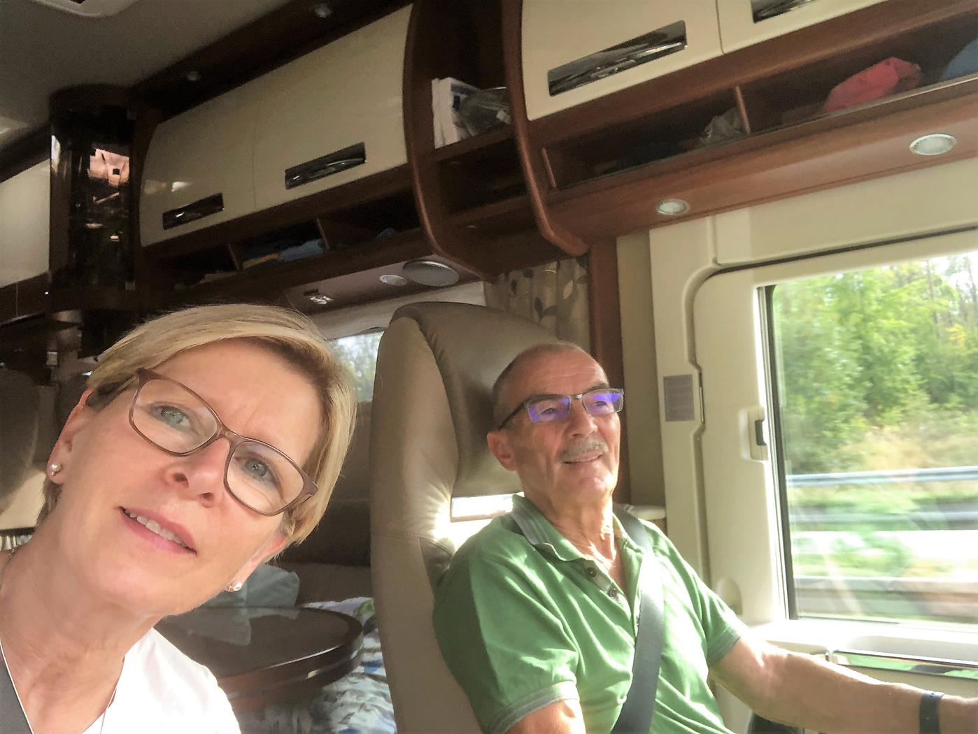 Vor unserer Rückreise müssen wir noch nach Aulendorf, da der Stellmotor der Busklappe defekt ist. Dieter und Brunhild kommen mit uns, um in Aulendorf die Carthago Neufahrzeuge anzuschauen.