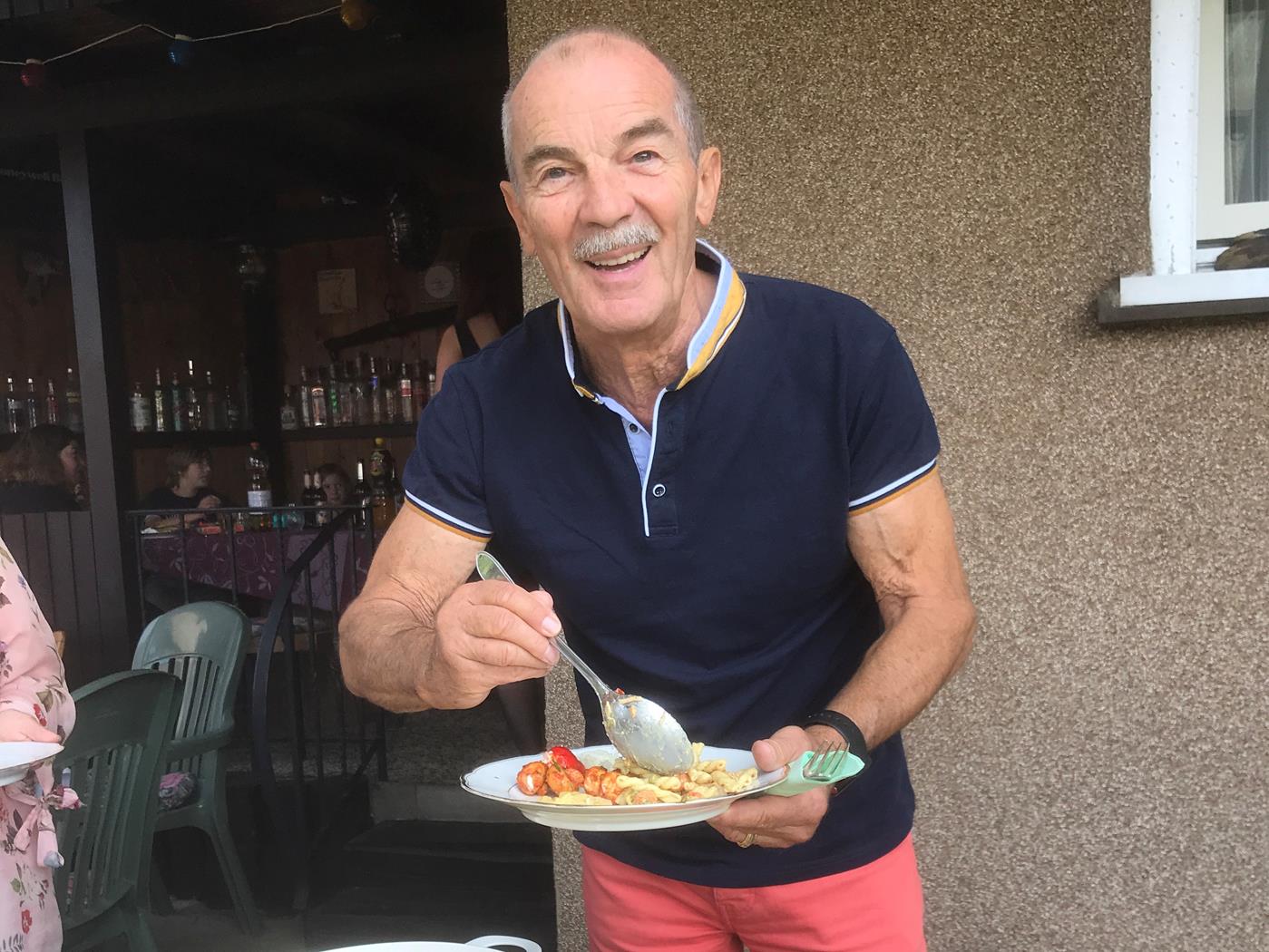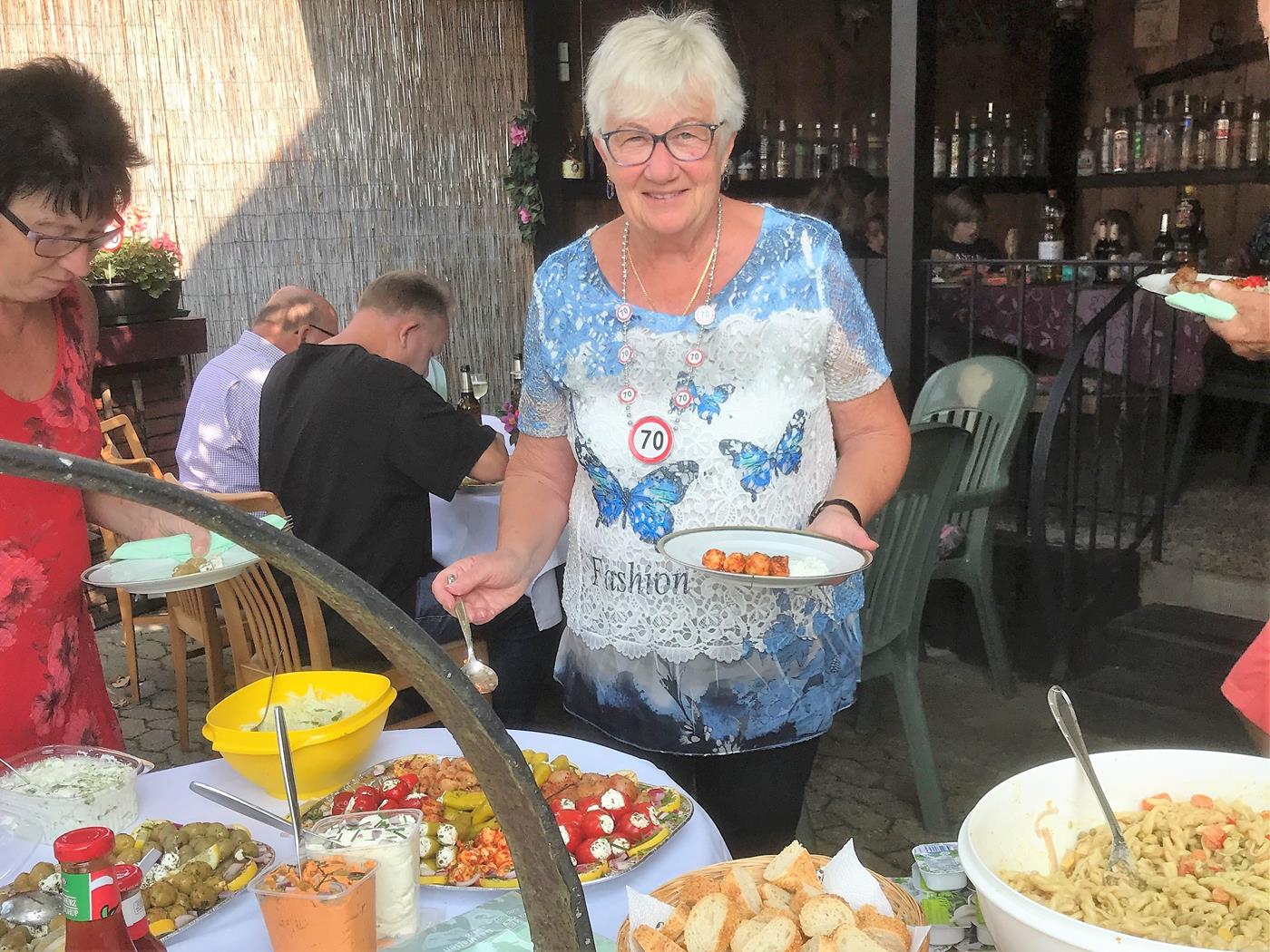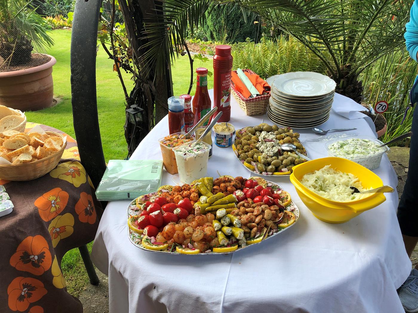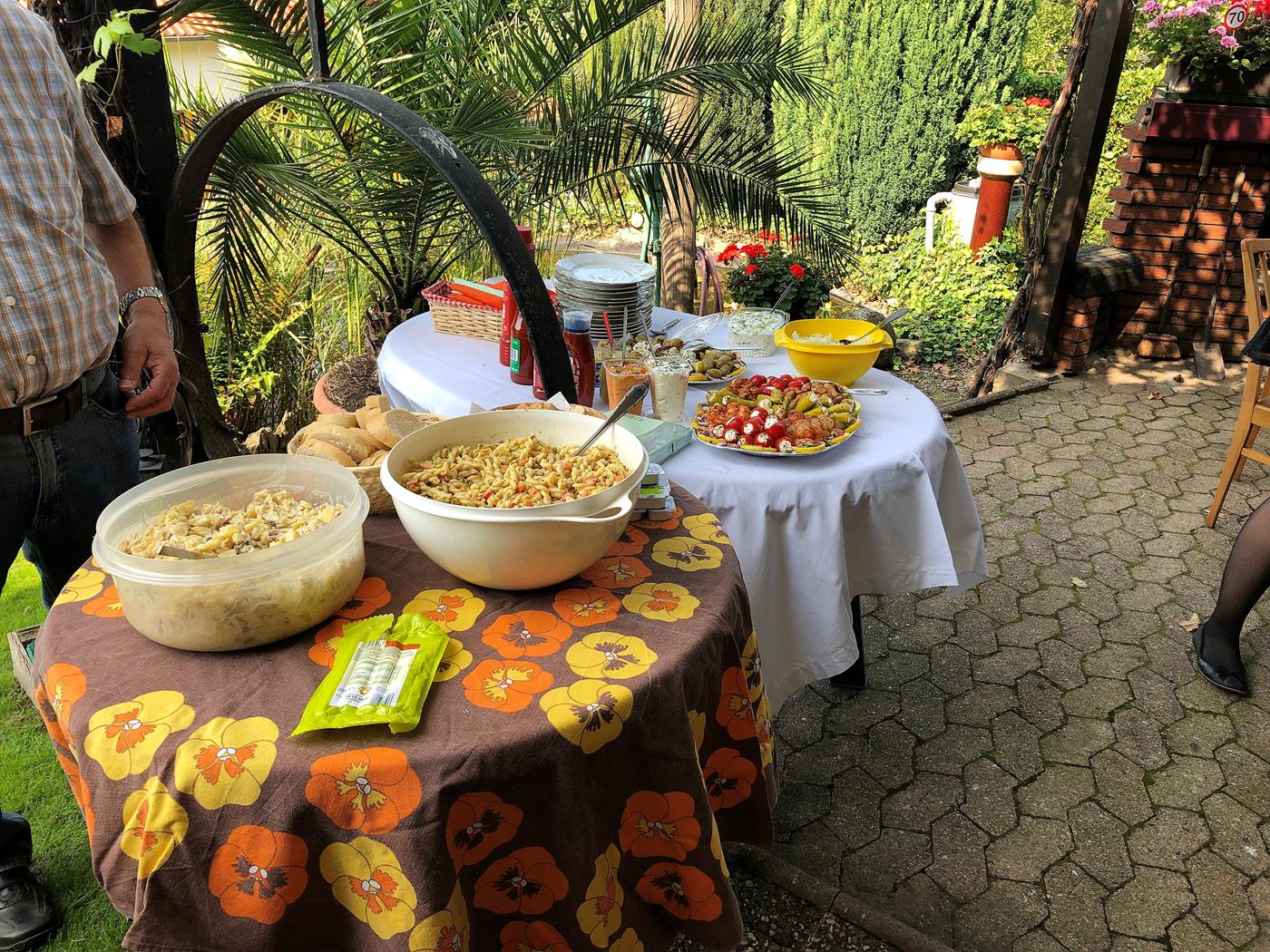 Damit wir mit unserem schweren Geschenk nicht so weit laufen müssen, fahren mit dem Taxi zu Brunhild und Dieter wo wir bei schönem Wetter das Fest geniessen können.