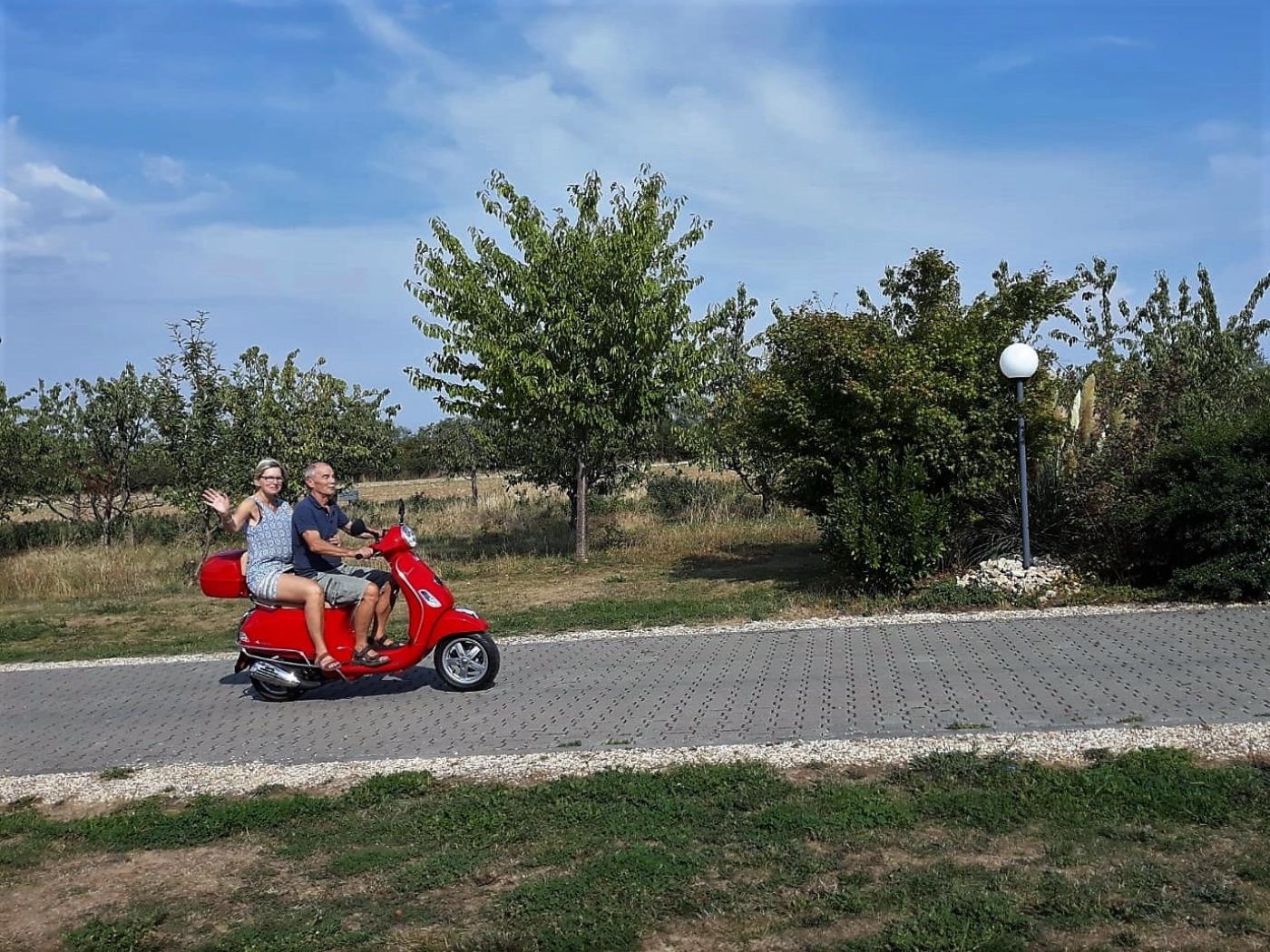 Heute wollen wir mit den Elektrofahrrädern und der Vespa an den Rhein in Ingelheim fahren. Nach dem Entladen der Vespa, stelle ich fest, dass jetzt die Starterbatterie wirklich am Ende ist und auch nicht mehr geladen werden kann. Nun, da sie neun Jahre gehalten hat, können wir uns nicht beklagen.