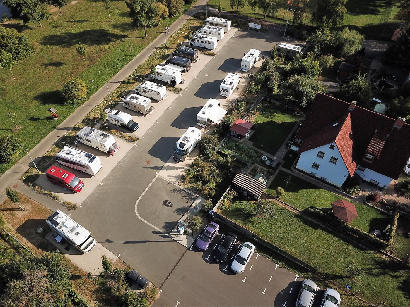 Es sind noch zwei Plätze nebeneinander verfügbar, welche wir gerne nehmen, obwohl diese auf dem Ergänzungsplatz mit 12 Parzellen im Format 6 x 12 Meter auf der anderen Strassenseite sind. Wir bezahlen gleich für zwei Nächte, denn die Stellplätze in Bayern sind sehr gut besucht und man findet nur mit viel Glück einen freien Platz.