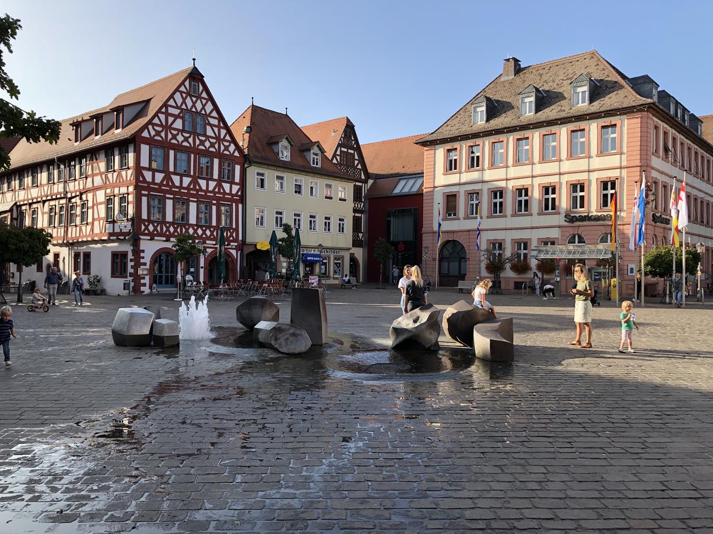 Wir haben riesiges Glück, es hat einen freien Platz und ein Wohnmobilist informiert uns, dass er in etwa 15Minuten wegfahren würde und wir dann seinen Platz übernehmen können. Es ist ein schöner Stellplatz, direkt am Main und die schöne Altstadt auf der anderen Mainseite ist in 5 Minuten zu Fuss erreichbar.