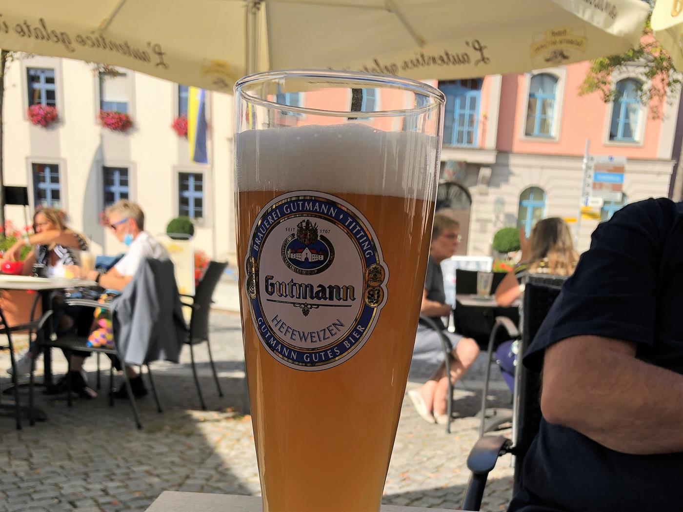 Wir spazieren in die Stadt und lassen es uns bei einem Weizen gut gehen.