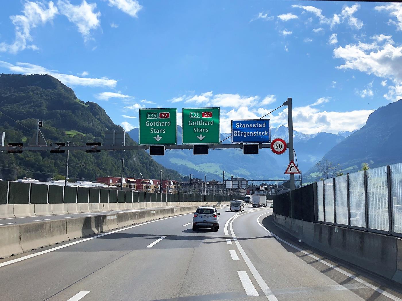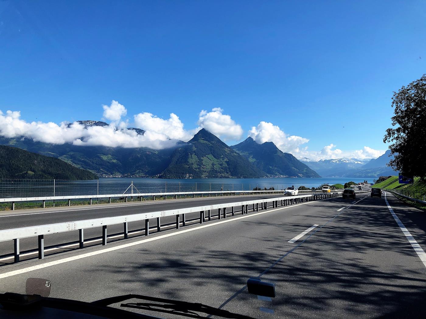 Auf unserer Fahrt Richtung Schweiz haben wir schönes Wetter und wenig Verkehr, was uns gut gefällt.