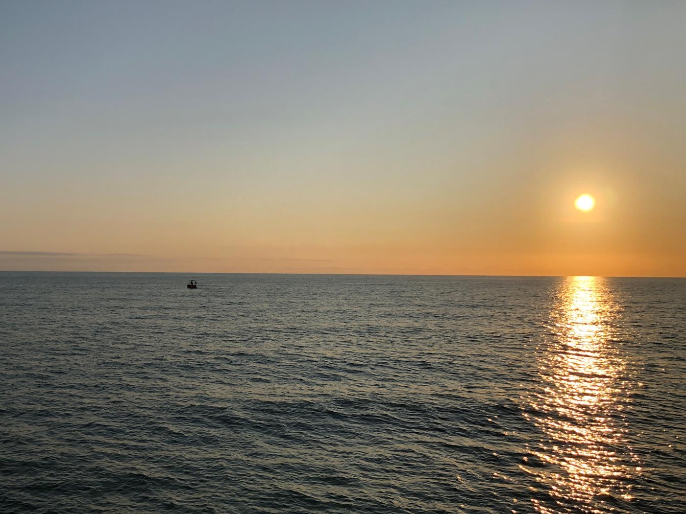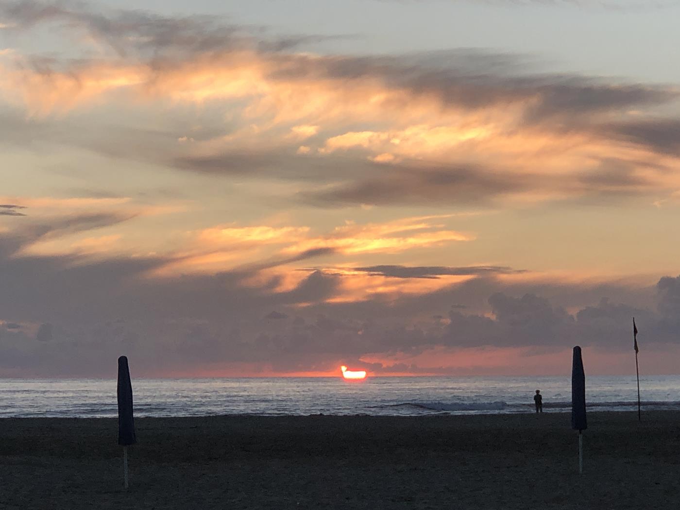 Nach dem Abendessen machen wir noch einen Verdauungs-Spaziergang zum Strand, um den Sonnenuntergang anzuschauen.