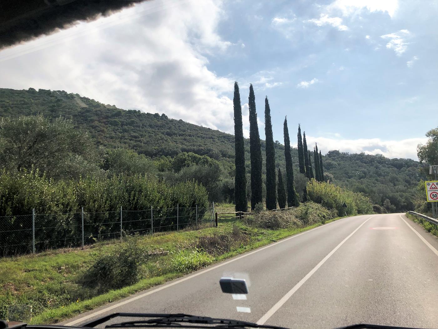 Wir fahren auf der SS1 Richtung Livorno – Cecina. Die Strecke führt uns durch die schöne toskanische Landschaft.