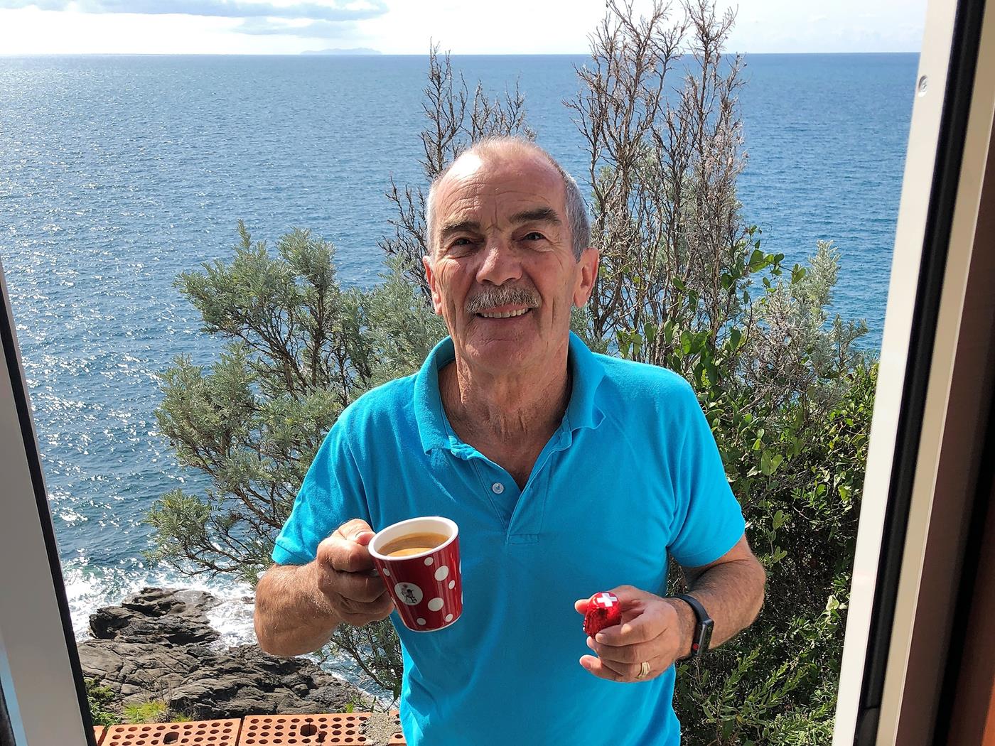 Bevor wir losfahren gehen wir noch ins Caffé Verbano zu einem Cappuccino und Cornetto.