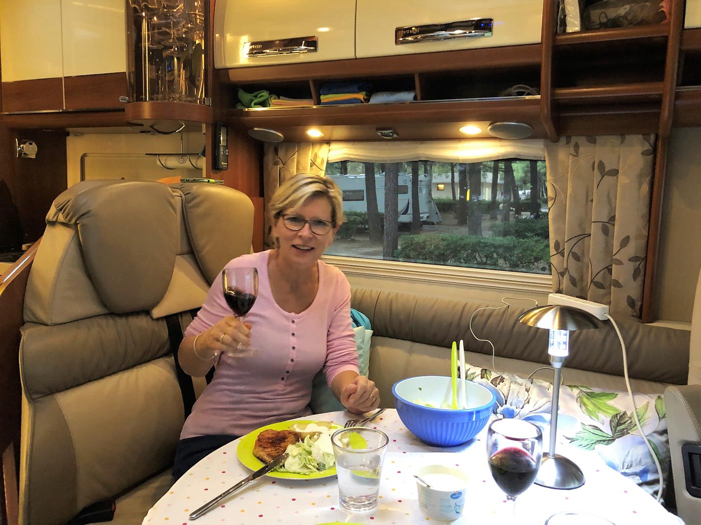 Heute früh hat es starken Wind, ja es ist richtig stürmisch und so bleiben wir zum Frühstücken im Wohnmobil.