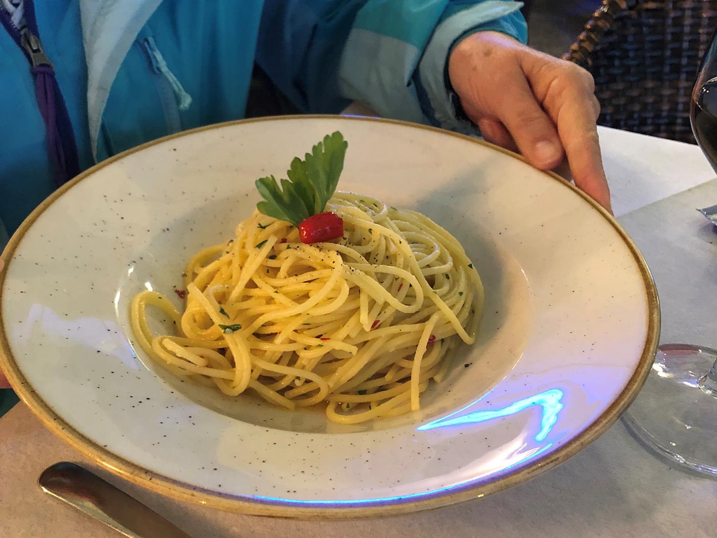 Als alte Stammgäste erhalten wir einen schönen Tisch bei einem Heizpilz wo wir einen wunderschönen Abend mit guter italienischer Küche verbringen.