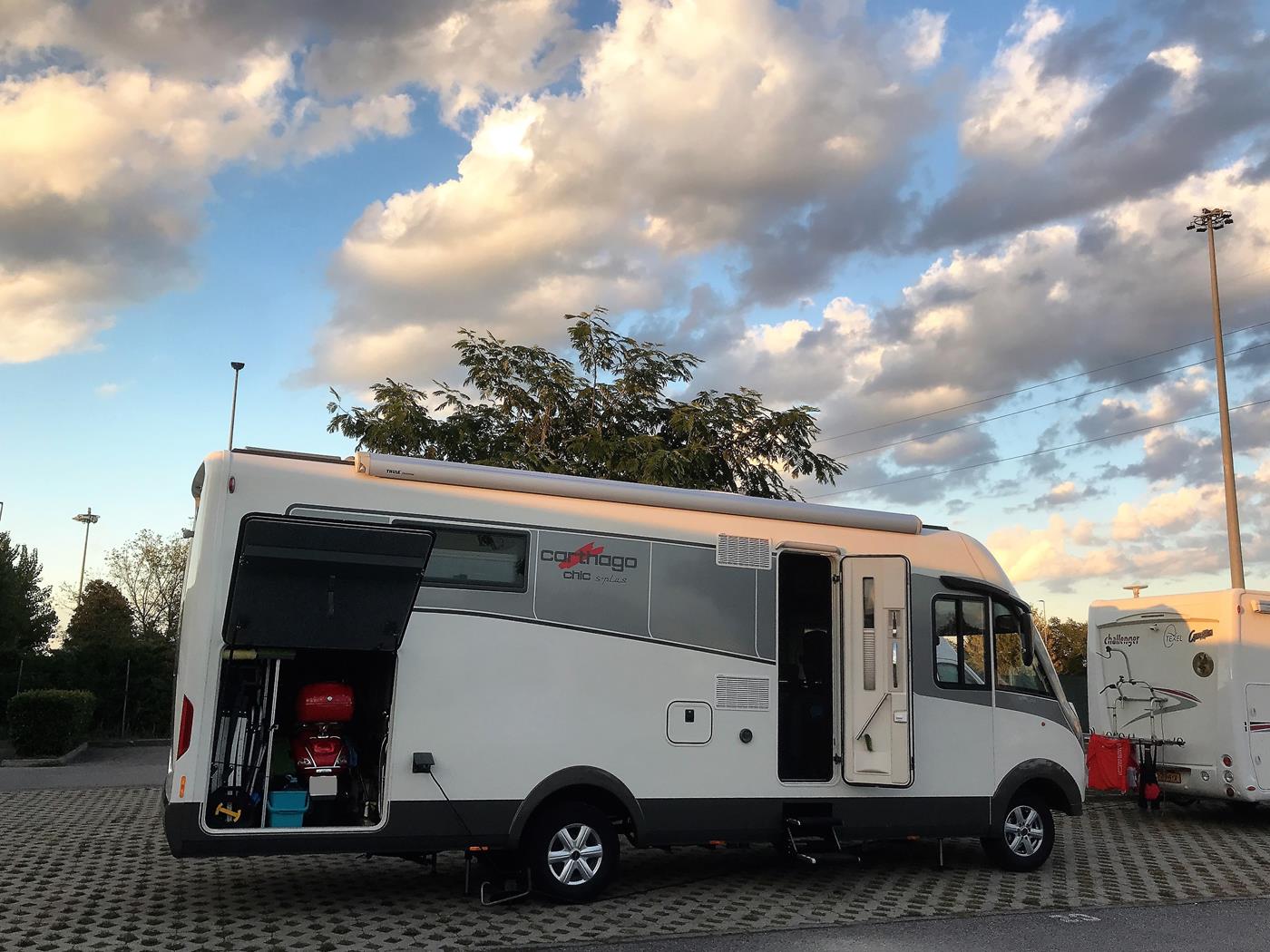 Wir erreichen unseren ausgewählten Stellplatz in Parma bei schönem und warmem Wetter. Nach dem Einparken gehen wir in den nahegelegenen Lidl einkaufen und bereiten uns eine typisch italienische Mahlzeit zu.