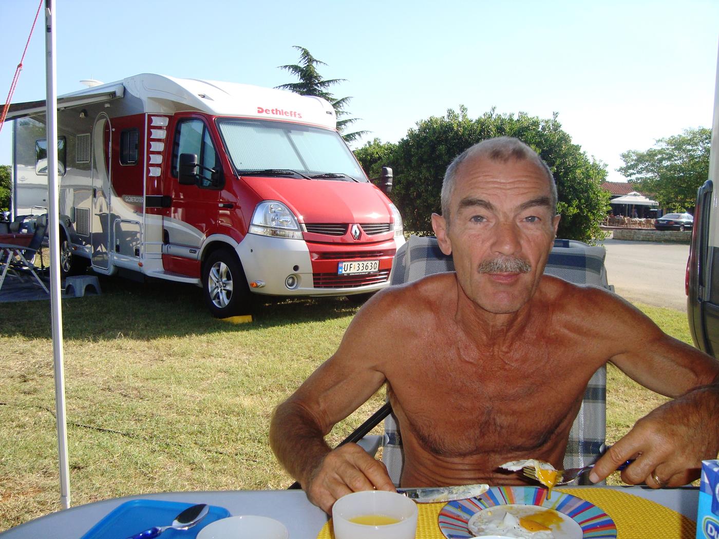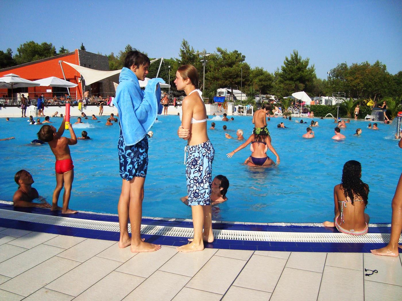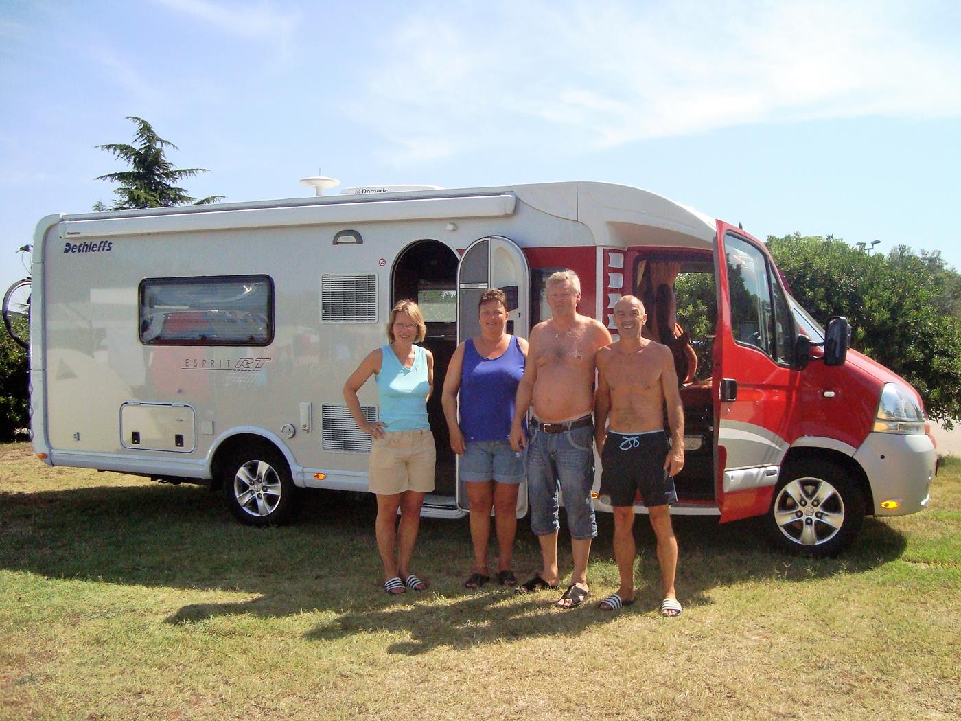 Am Samstag, 18. Juli wechseln wir auf einen nicht parzellierten Platz in der Nähe der Rezeption. Hier hat es viel Platz und wir stellen uns in die Nähe eines Wohnmobils aus Norwegen, in der Hoffnung mit Leuten aus Norwegen ins Gespräch zu kommen.An diesem Abend gibt es ein heftiges Gewitter und zum Glück kommen uns unsere norwegischen Nachbarn zu Hilfe. Gemeinsam können wir unsere Markise einziehen und so grösseren Schaden verhindern. Anschliessend helfen wir bei ihrem Wohnmobil ebenfalls mit der Markise. Wir verstehen uns sehr gut mit Tove und Geir und das ist der Anfang einer schönen Freundschaft.Leider müssen Tove und Geir am Mittwoch 22. Juli Rovinj schon wieder verlassen, aber wir vereinbaren, dass wir uns nächstes Jahr wieder hier treffen wollen. Wir geniessen für den Rest des Urlaubs das Städtchen Rovinj und die Poollandschaft auf dem Campingplatz. Dank Valérie lernen wir noch nette Leute aus Turin kennen, Irene und Giorgio mit ihren Kindern.Die Zeit geht viel zu schnell vorbei und schon bald müssen wir zusammenpacken und den Heimweg antreten.Freitag, 24.07.2009 Rovinj – Autoparco Brescia Est
